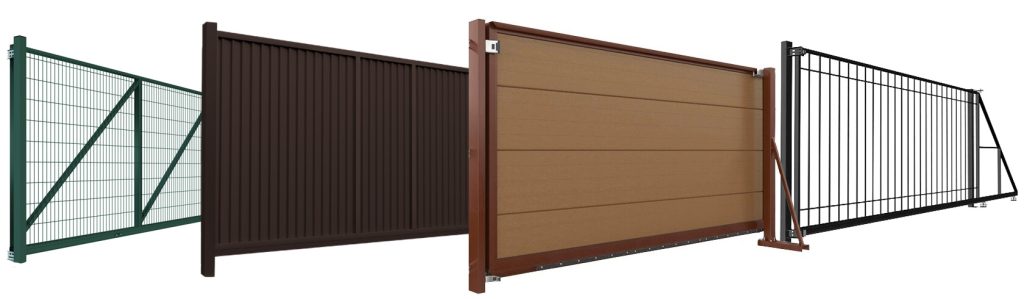 Предназначены для установки на частных и промышленных объектах, обеспечивая контроль доступа на территорию. Широкий выбор заполнения полотна: от классического профнастила и сэндвич-панелей до премиальной декоративной доски и современных дизайнерских решеток. Также возможны индивидуальные решения с использованием элементов художественной ковки. Откатной механизм обеспечивает удобное открытие в сторону для экономии пространства. Варианты установки зависят от ширины проёма и наличия свободного пространства вдоль забора для отката полотна.